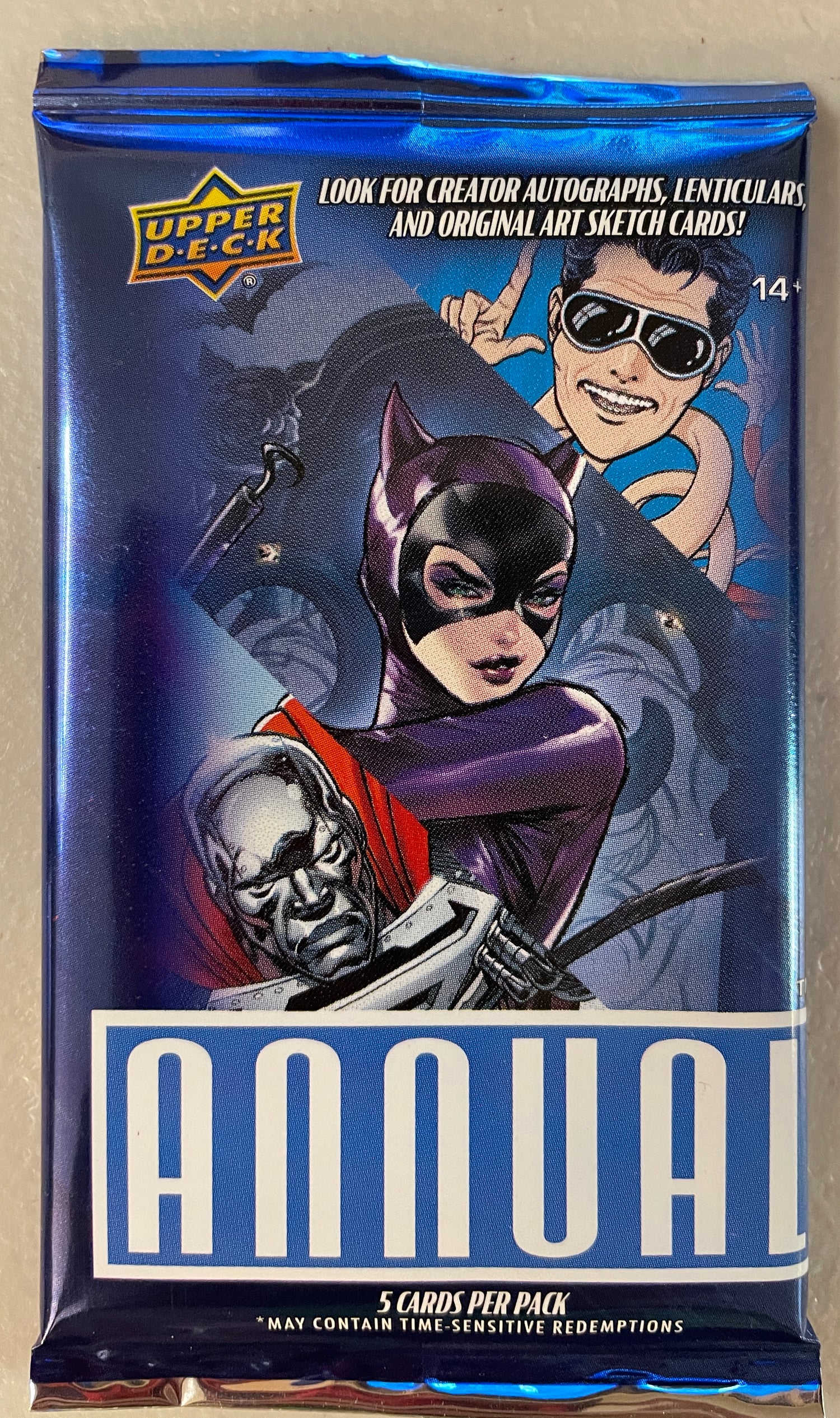 Experience the thrill of collecting 2024 DC Annual trading cards with this 5 card pack by Upper Deck. Each card is a unique piece of art, showcasing iconic characters and moments from the DC universe. Start or expand your collection today and immerse yourself in the action-packed world of DC!